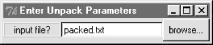 When the form is filled in and submitted with its OK button, parameters are finally passed to an instance of the PackApp class we wrote in Chapter 4 to do file concatenations. The GUI interface to the unpacking script is simpler, because there is only one input field -- the name of the packed file to scan. The script in Example 9-8 generated the input form window shown in Figure 9-7. Example 9-8. PP2E\Gui\ShellGui\unpkdlg.py# added file select dialog, handles cancel better from Tkinter import * # widget classesfrom tkFileDialog import * # file open dialogfrom PP2E.System.App.Clients.unpackapp import UnpackApp # use unpack classdef runUnpackDialog( ):input = UnpackDialog( ).input # get input from GUI if input != '': # do non-gui file stuff print 'UnpackApp:', input app = UnpackApp(ifile=input) # run with input from file app.main( ) # execute app class class UnpackDialog(Toplevel): def __init__(self): # a function would work too Toplevel.__init__(self) # resizable root box self.input = '' # a label and an entry self.title('Enter Unpack Parameters') Label(self, text='input file?', relief=RIDGE, width=11).pack(side=LEFT) e = Entry(self, relief=SUNKEN) b = Button(self, text='browse...') e.bind('<Key-Return>', self.gotit)b.config(command=(lambda x=e: x.insert(0, askopenfilename( )))) b.pack(side=RIGHT) e.pack(side=LEFT, expand=YES, fill=X) self.entry = eself.grab_set( ) # make myself modal self.focus_set( ) self.wait_window( ) # till I'm destroyed on return->gotit def gotit(self, event): # on return key: event.widget==Entry self.input = self.entry.get( ) # fetch text, save in self self.destroy( ) # kill window, but instance lives on if __name__ == "__main__": Button(None, text='pop', command=runUnpackDialog).pack( ) mainloop( ) The "browse..." button in Figure 9-7 pops up a file selection dialog just like the packdlg form. Rather than an OK button, this dialog binds the enter key-press event to kill the window and end the modal wait state pause; on submission, the name of the file is passed to an instance of the UnpackApp class shown in Chapter 4 to perform the actual file scan process. Figure 9-7. The unpkdlg input form