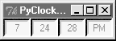 The clock hand lines are given arrows at their endpoints with the canvas line object's arrow and arrowshape options. The arrow option can be "first", "last", "none", or "both"; the arrowshape option takes a tuple giving the length of the arrow touching the line, its overall length, and its width. Like PyView, PyClock also uses the widget pack_forget and pack methods to dynamically erase and redraw portions of the display on demand (i.e., in response to bound events). Clicking on the clock with a left mouse button changes its display to digital by erasing the analog widgets and drawing the digital interface; you get the simpler display captured in Figure 9-21. Figure 9-21. PyClock goes digital