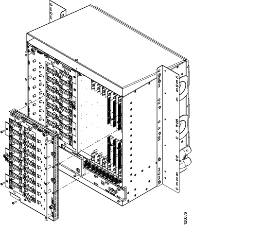 Line up the alignment pins on the UBIC-H EIA ( Figure 20-23) with the alignment standoffs on the shelf and push the UBIC-H EIA with consistent pressure until the pins and standoffs fit together firmly.